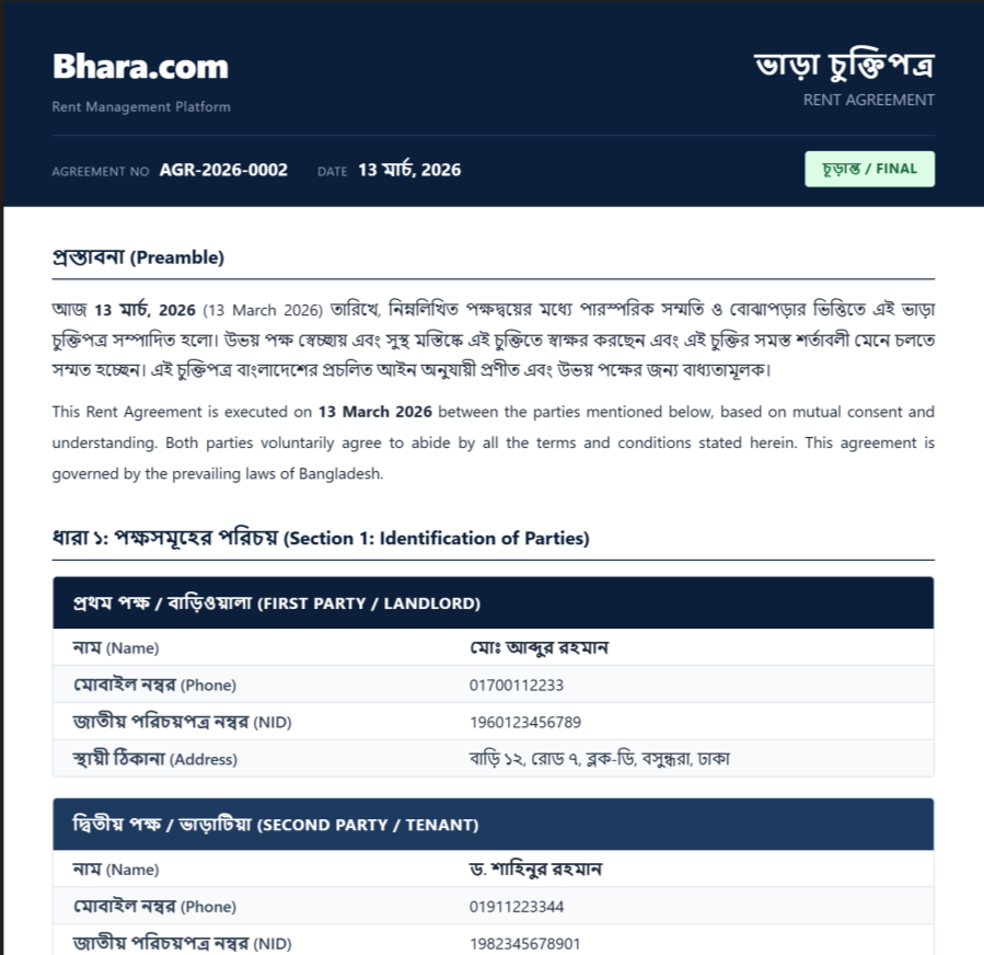ডিজিটাল ভাড়া চুক্তিপত্র
