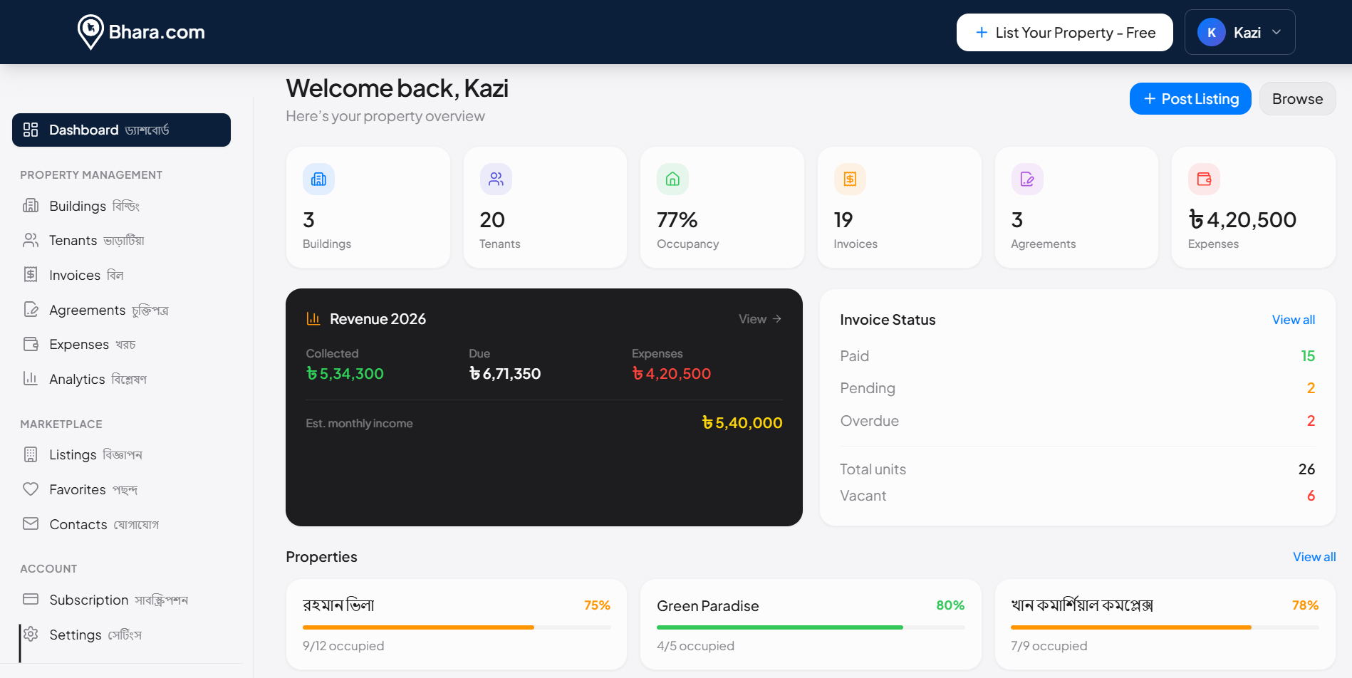 আপনার প্রতিটি প্রপার্টি ম্যানেজ করুন এক ড্যাশবোর্ড থেকে