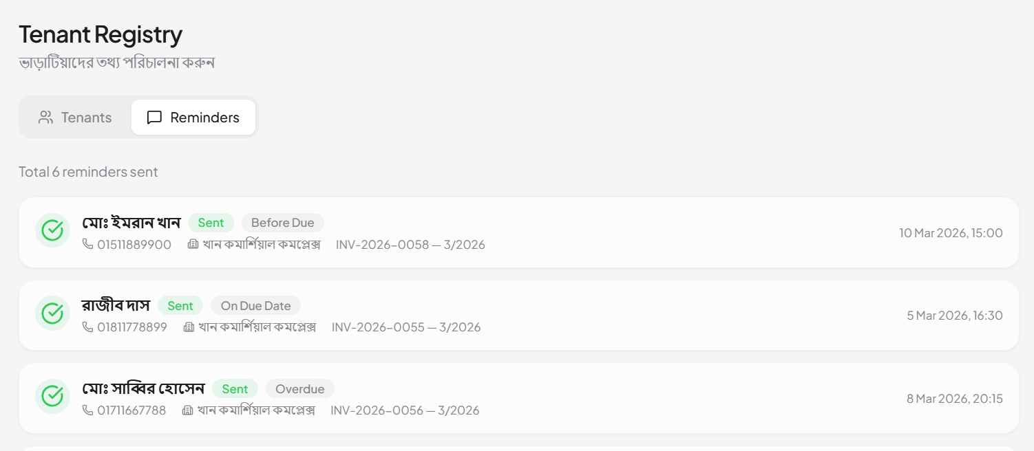- এক ক্লিকে সব ভাড়াটিয়াকে ইনভয়েস